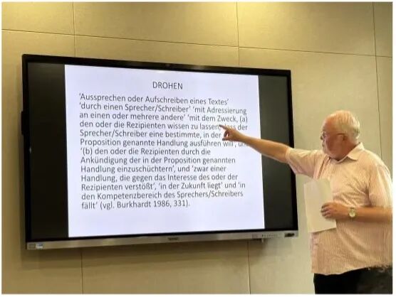在报告中,Burkhardt教授结合2025年德国大选前后的政治新闻实例,深入剖析了记者对政治人物、运动员或流行歌星等人言论的 “标签化” 解读现象,揭示了新闻传播中语义准确性与受众吸引力之间的复杂矛盾。他强调,新闻中言语行为的不合理归属,本质是媒体对 “传播效果” 的追求:通过 “标签化” 标题制造冲突感,从而提升报道的阅读量与传播度。但这种做法的弊端显而易见:它可能扭曲政治人物的原始言论意图,造成信息偏差。例如,部分报道为强化对立,会 “虚构”言论的直接受众,将面向公众的政策立场声明,解读为针对特定政治对手的 “威胁” 或 “指责”,忽略言语行为的语境关联性。他认为,尽管这类归属能短期刺激公共话语,从长期来看却可能背离新闻报道的客观性原则,甚至影响公众对政治事件的理性判断。
